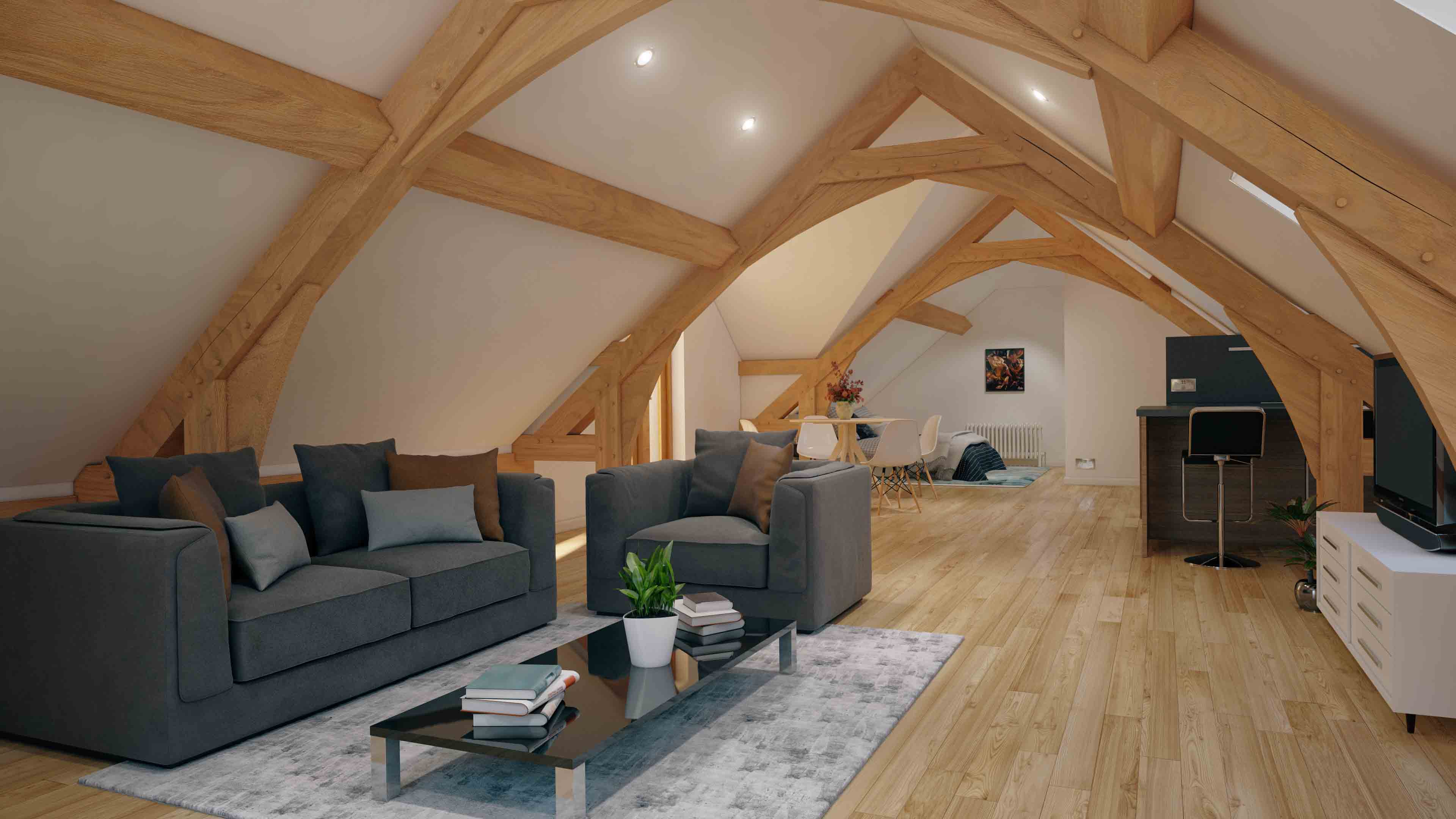 One of the most compelling aspects of this oak framed design is its financial practicality. The independent access to the annex allows it to be rented out, creating a source of income that can offset the construction costs within a relatively short timeframe. An option many have chosen.