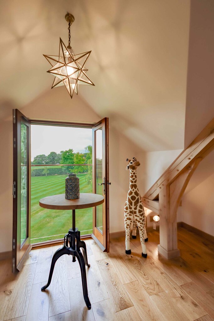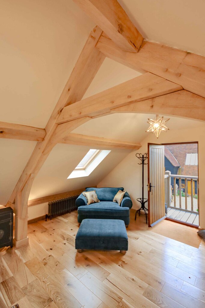 Beyond its contribution to property value, the room above the three garage spaces presents an opportunity for generating rental income, a choice many homeowners deploy. When designed with care and attention to detail, spaces like this are highly appealing to guests seeking unique and private accommodation. The combination of exposed oak beams, expansive glazing, and the cosy, self-contained layout makes such spaces particularly desirable. As a result, they often command a premium in the rental market.
